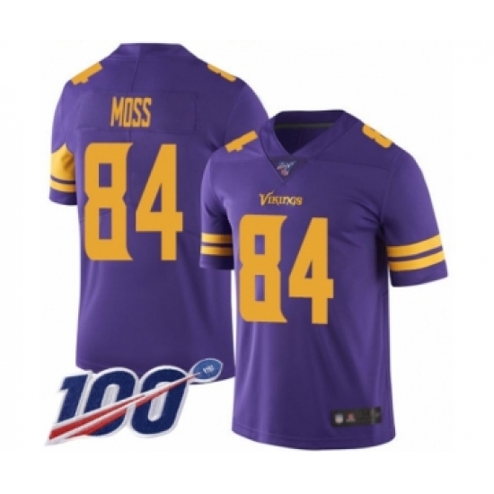 Men's Minnesota Vikings #84 Randy Moss Limited Purple Rush Vapor Untouchable 100th Season Football Jersey