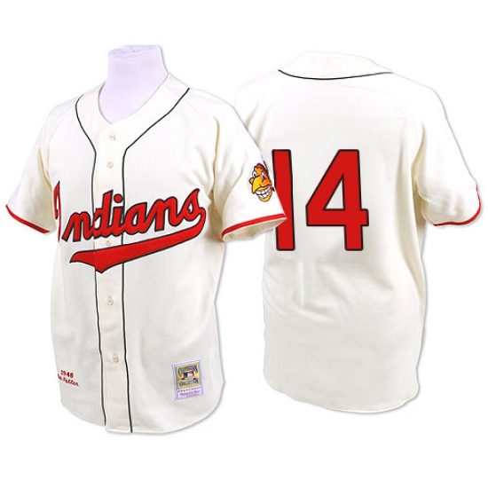 Men's Mitchell and Ness 1948 Cleveland Indians #14 Larry Doby Replica Cream Throwback MLB Jersey