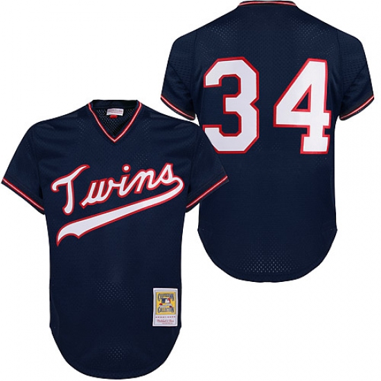 Men's Mitchell and Ness 1985 Minnesota Twins #34 Kirby Puckett Authentic Navy Blue Throwback MLB Jersey
