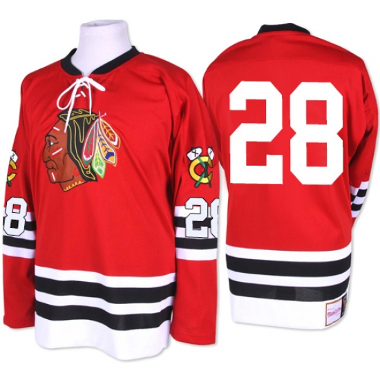 Home>NHL>Chicago Blackhawks>Steve Larmer>Men's Mitchell and Ness Chicago Blackhawks #28 Steve Larmer Authentic Red 1960-61 Throwback NHL Jersey