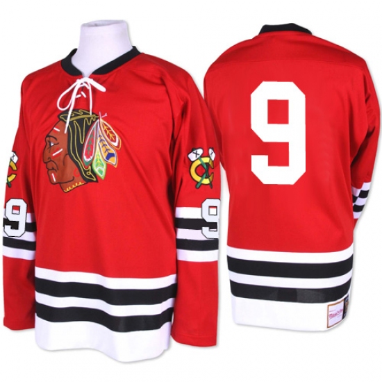 Men's Mitchell and Ness Chicago Blackhawks #9 Bobby Hull Authentic Red 1960-61 Throwback NHL Jersey