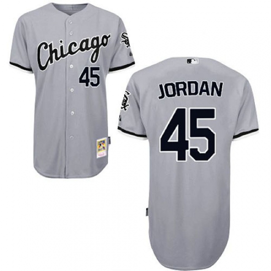 Men's Mitchell and Ness Chicago White Sox #45 Michael Jordan Replica Grey Throwback MLB Jersey