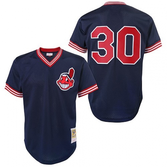 Home>MLB>Cleveland Indians>Joe Carter>Men's Mitchell and Ness Cleveland Indians #30 Joe Carter Replica Blue Throwback MLB Jersey