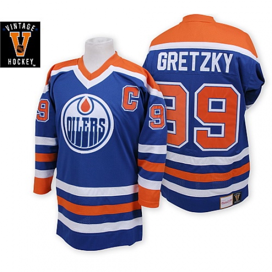 Home>NHL>Edmonton Oilers>Wayne Gretzky>Men's Mitchell and Ness Edmonton Oilers #99 Wayne Gretzky Premier Navy Blue Throwback NHL Jersey