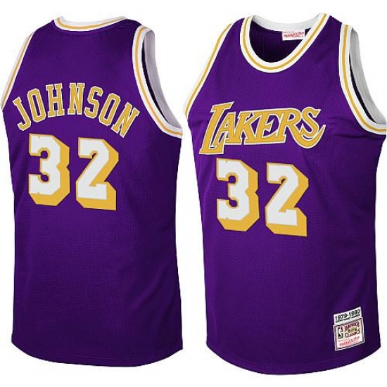 Men's Mitchell and Ness Los Angeles Lakers #32 Magic Johnson Swingman Purple Throwback NBA Jersey