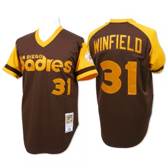 Home>MLB>San Diego Padres>Dave Winfield>Men's Mitchell and Ness San Diego Padres #31 Dave Winfield Replica Brown Throwback MLB Jersey