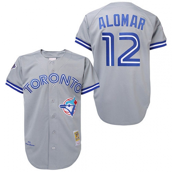 Home>MLB>Toronto Blue Jays>Roberto Alomar>Men's Mitchell and Ness Toronto Blue Jays #12 Roberto Alomar Replica Grey Throwback MLB Jersey