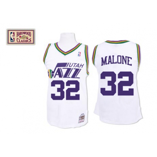 Men's Mitchell and Ness Utah Jazz #32 Karl Malone Authentic White Throwback NBA Jersey