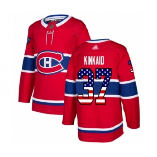 Men's Montreal Canadiens #37 Keith Kinkaid Authentic Red USA Flag Fashion Hockey Jersey