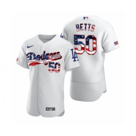Men's Mookie Betts #50 Los Angeles Dodgers White 2020 Stars & Stripes 4th of July Jersey