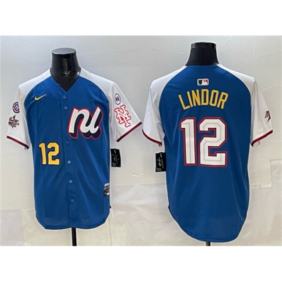 >Men's National League #12 Francisco Lindor Blue Alternate 2025 All-Star With Edition Limited Stitched Baseball Jersey