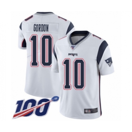 >Men's New England Patriots #10 Josh Gordon White Vapor Untouchable Limited Player 100th Season Football Jersey