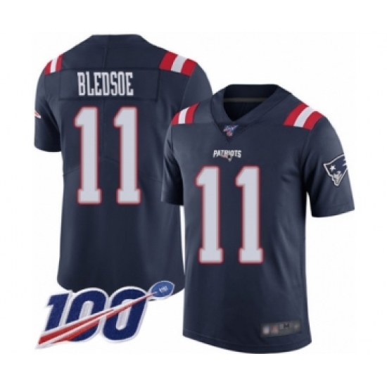 >Men's New England Patriots #11 Drew Bledsoe Limited Navy Blue Rush Vapor Untouchable 100th Season Football Jersey