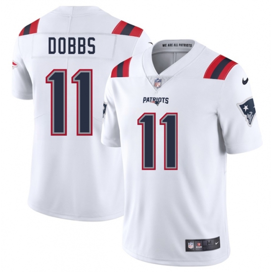 >Men's New England Patriots #11 Joshua Dobbs White 2025 Vapor Limited Football Stitched Jersey