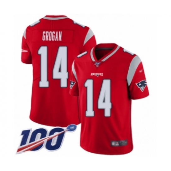 Men's New England Patriots #14 Steve Grogan Limited Red Inverted Legend 100th Season Football Jersey