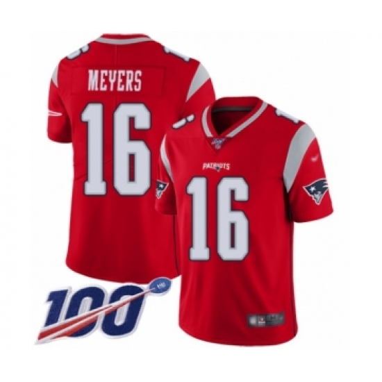 >Men's New England Patriots #16 Jakobi Meyers Limited Red Inverted Legend 100th Season Football Jersey