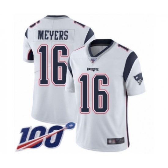 >Men's New England Patriots #16 Jakobi Meyers White Vapor Untouchable Limited Player 100th Season Football Jersey