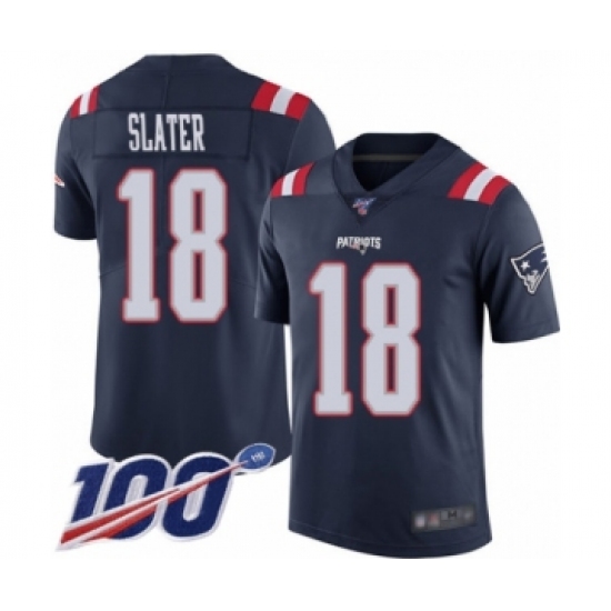 >Men's New England Patriots #18 Matthew Slater Limited Navy Blue Rush Vapor Untouchable 100th Season Football Jersey