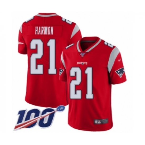Men's New England Patriots #21 Duron Harmon Limited Red Inverted Legend 100th Season Football Jersey