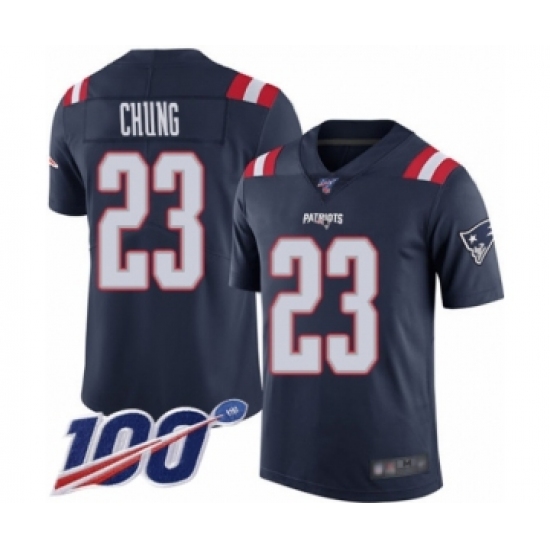 >Men's New England Patriots #23 Patrick Chung Limited Navy Blue Rush Vapor Untouchable 100th Season Football Jersey