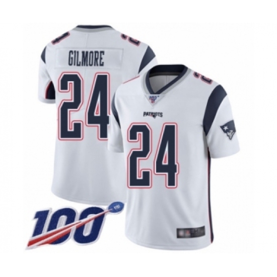 Men's New England Patriots #24 Stephon Gilmore White Vapor Untouchable Limited Player 100th Season Football Jersey