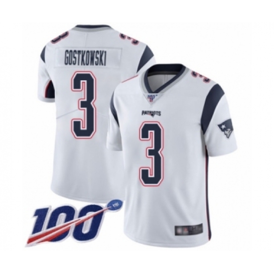 >Men's New England Patriots #3 Stephen Gostkowski White Vapor Untouchable Limited Player 100th Season Football Jersey
