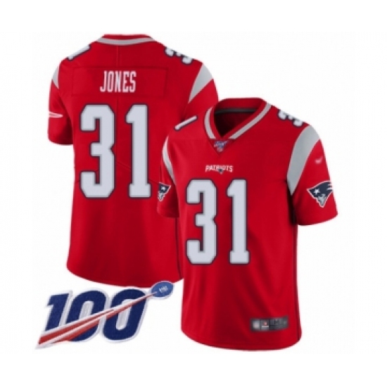 >Men's New England Patriots #31 Jonathan Jones Limited Red Inverted Legend 100th Season Football Jersey