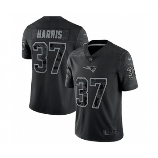 >Men's New England Patriots #37 Damien Harris Black Reflective Limited Stitched Football Jersey