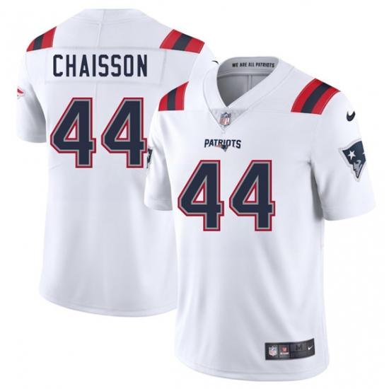 >Men's New England Patriots #44 K'Lavon Chaisson White 2025 Vapor Limited Football Stitched Jersey