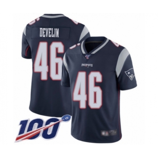 >Men's New England Patriots #46 James Develin Navy Blue Team Color Vapor Untouchable Limited Player 100th Season Football Jersey