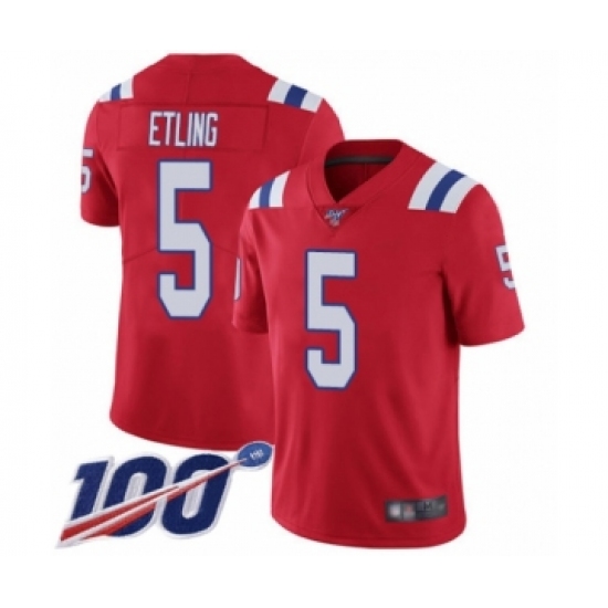 >Men's New England Patriots #5 Danny Etling Red Alternate Vapor Untouchable Limited Player 100th Season Football Jersey