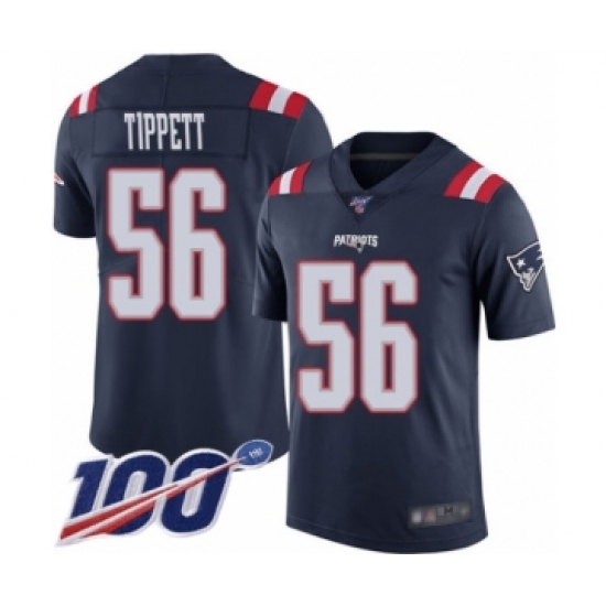 >Men's New England Patriots #56 Andre Tippett Limited Navy Blue Rush Vapor Untouchable 100th Season Football Jersey