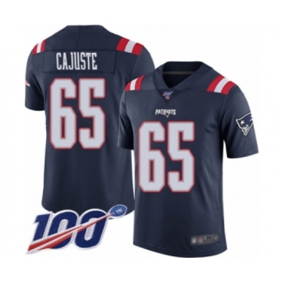 >Men's New England Patriots #65 Yodny Cajuste Limited Navy Blue Rush Vapor Untouchable 100th Season Football Jersey