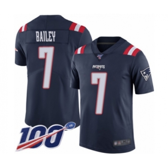 >Men's New England Patriots #7 Jake Bailey Limited Navy Blue Rush Vapor Untouchable 100th Season Football Jersey