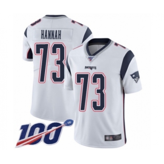 Men's New England Patriots #73 John Hannah White Vapor Untouchable Limited Player 100th Season Football Jersey
