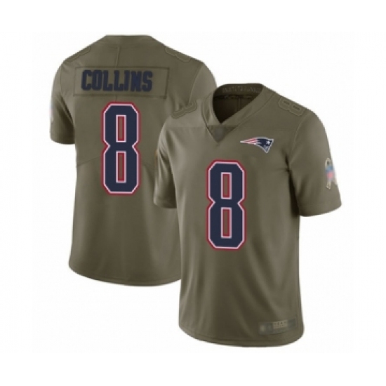 >Men's New England Patriots #8 Jamie Collins Limited Olive 2017 Salute to Service Football Jersey