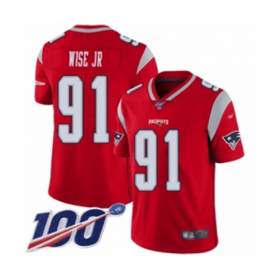 Men's New England Patriots #91 Deatrich Wise Jr Limited Red Inverted Legend 100th Season Football Jersey