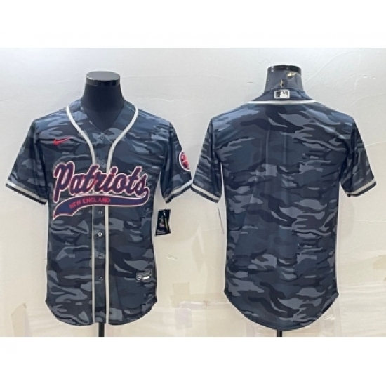 Men's New England Patriots Blank Grey Camo With Patch Cool Base Stitched Baseball Jersey
