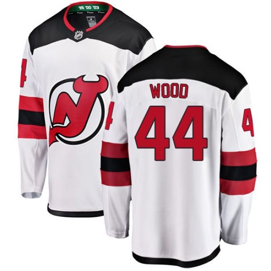 Men's New Jersey Devils #44 Miles Wood Fanatics Branded White Away Breakaway NHL Jersey