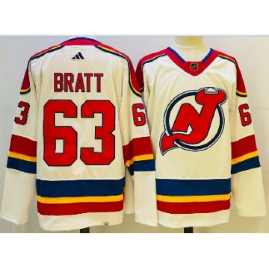 >Men's New Jersey Devils #63 Jesper Bratt White 2022 Reverse Retro Authentic Jersey