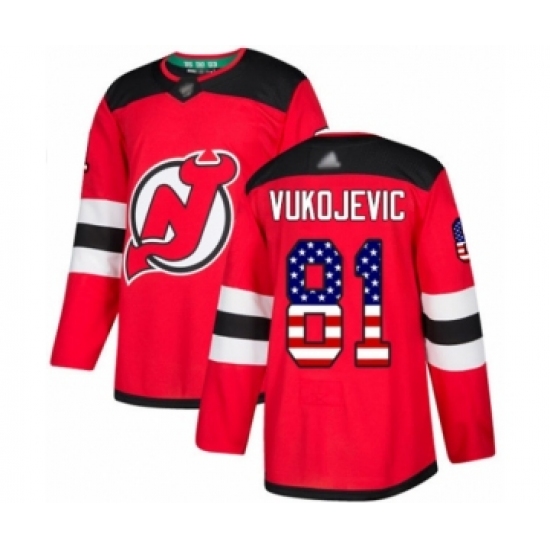 Men's New Jersey Devils #81 Michael Vukojevic Authentic Red USA Flag Fashion Hockey Jersey