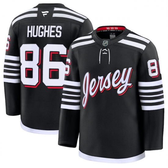 Men's New Jersey Devils #86 Jack Hughes Black 2024-25 Alternate Stitched Hockey Jersey