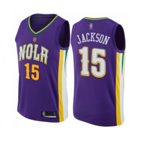 >Men's New Orleans Pelicans #15 Frank Jackson Authentic Purple Basketball Jersey - City Edition