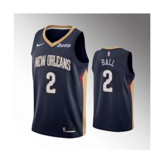 Men's New Orleans Pelicans #2 Lonzo Ball Navy Icon Edition Stitched Jersey