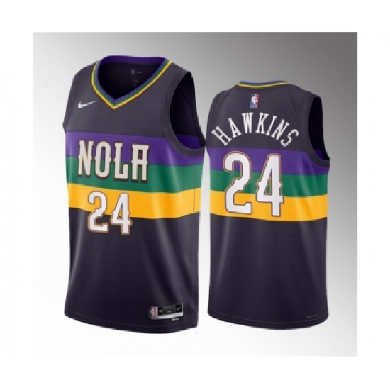 Men's New Orleans Pelicans #24 Jordan Hawkins Purple 2023 Draft City Edition Stitched Basketball Jersey