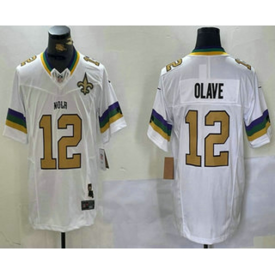 >Men's New Orleans Saints #12 Chris Olave White Team 2024 FUSE Vapor Limited Stitched Jersey