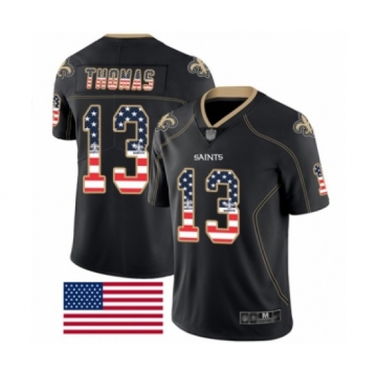 >Men's New Orleans Saints #13 Michael Thomas Limited Black Rush USA Flag Football Jersey