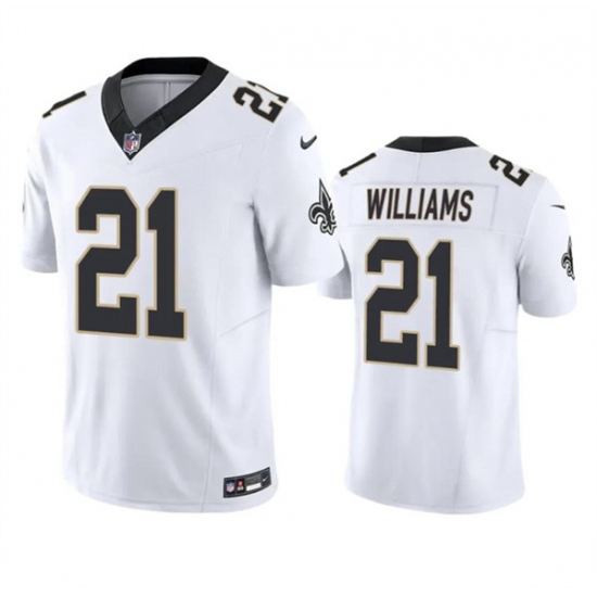 >Men's New Orleans Saints #21 Jamaal Williams White 2023 F.U.S.E. Vapor Untouchable Limited Football Stitched Jersey