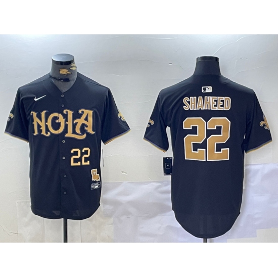 >Men's New Orleans Saints #22 Rashid Shaheed Black Cool Base Stitched Baseball Jerses