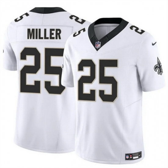 >Men's New Orleans Saints #25 Kendre Miller White Vapor Limited Stitched Football Jersey